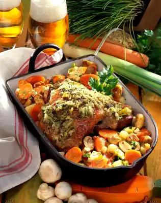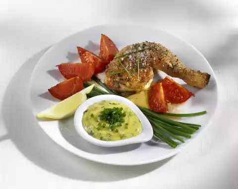 Chicken Filet With Herb-mustard Crust In Tomato Sauce