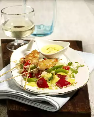 Chicken Saté Skewers On Vegetable Couscous And Curry Sauce