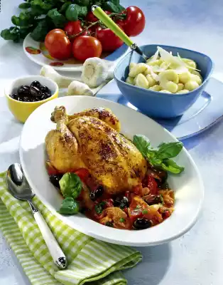Grilled Chicken Filet With Braised Vegetables And Tapenade