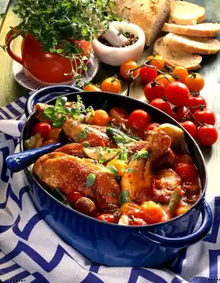 Chicken Pieces With Cherry Tomatoes And Spring Onions