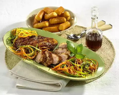 Crispy Roast Goose With Dumpling And Dumpling And Two Different Sauces