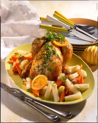 Herb And Lemon Chicken On Kohlrabi Carrots