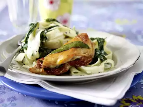 Saltimbocca Of Chicken Fillet And Spinach Cream Pasta