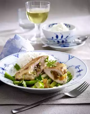 Stuffed Turkey Escalopes With Spring Onions And Rice