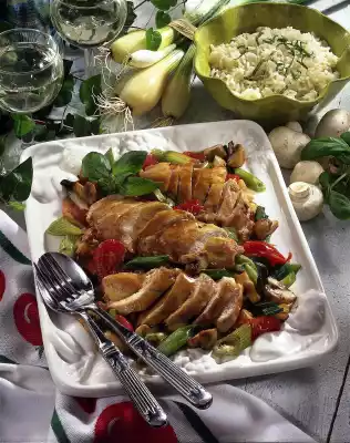 Turkey Breast With Colourful Paprika Vegetables And Rice