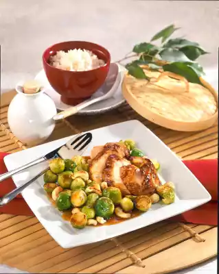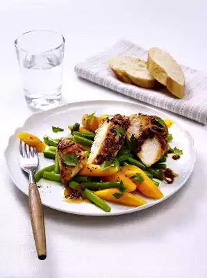 Fiery Chicken Fillet With Honey-beer Crust On Carrot-bean Vegetables