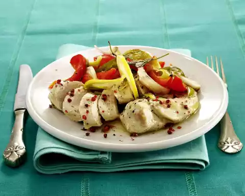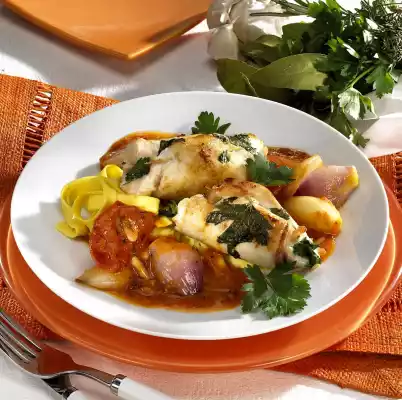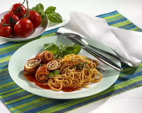 Turkey Rolls With Zucchini Filling And Tomato Sauce