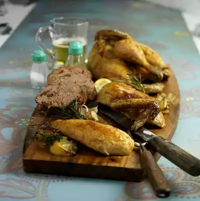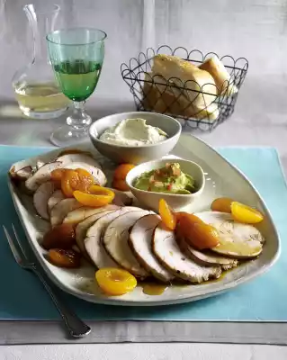 Cold Roast Turkey With Caramelised Apricots, Tomato-avocado Dip And Sour-mustard Dip