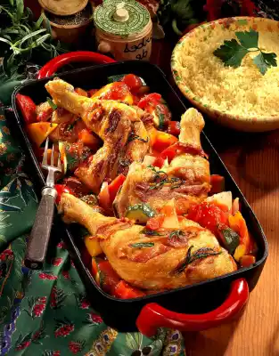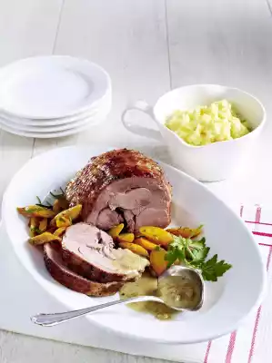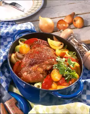 Leg Of Lamb Cooked In Milk With Potatoes And Vegetable Plate