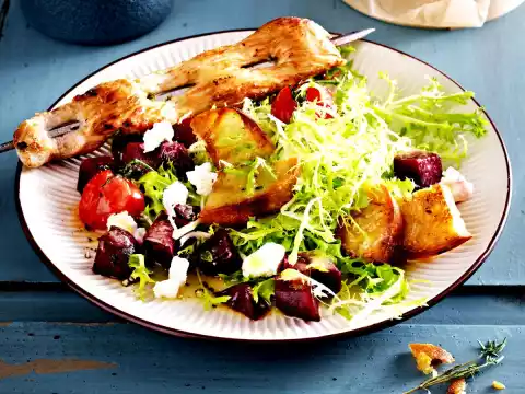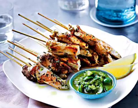 Chicken Saté Skewers On Vegetable Couscous And Curry Sauce