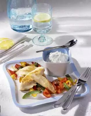 Chicken Filet With Yoghurt Sauce And Paprika Vegetables