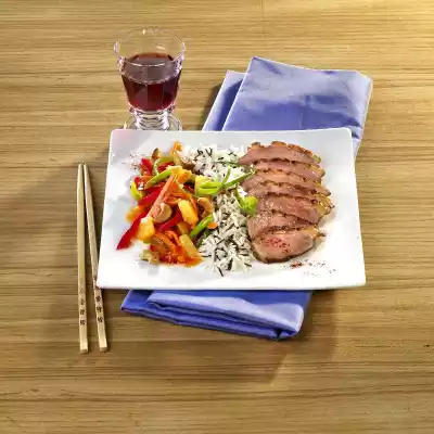 Crispy Duck Breast On Sweet And Sour Asian Vegetables