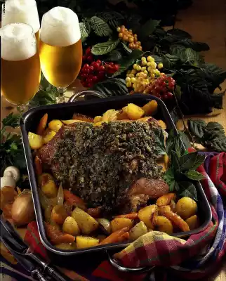 Duck-apricot Roulade With Potato And Cheese Gratin