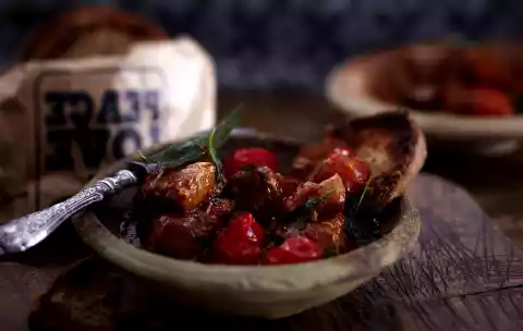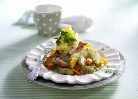 Braised Cucumber Ragout With Smoked Pork And Mustard Sauce