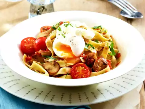 Wholemeal Ribbon Noodles With Tomato And Mushroom Sauce