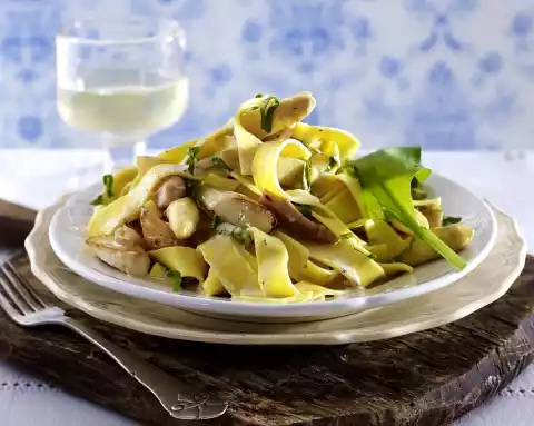 Noodles With Roasted Asparagus, Wild Garlic And Chicken Filet