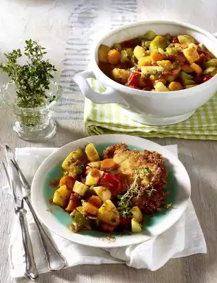 Potato And Vegetable Ragout With Parmesan Cutlets