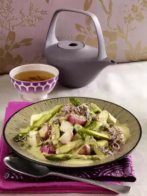 Green Noodles With Roasted Asparagus, Wild Garlic And Chicken Filet