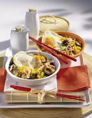 Salmon With Onion Vinaigrette, Rice Balls And Avocado Cream