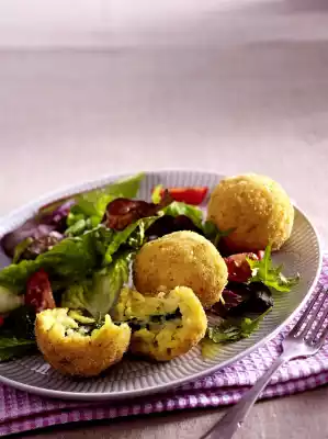 Fried Stuffed Rice Balls (arancini) With Leaf Salad
