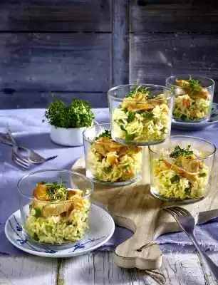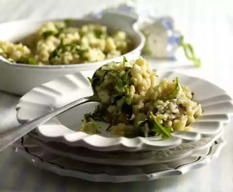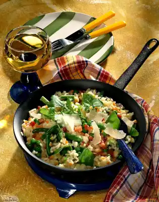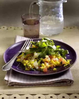 Saffron Risotto With Gremulata, Tomatoes, Spring Onions And Rocket