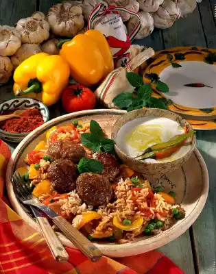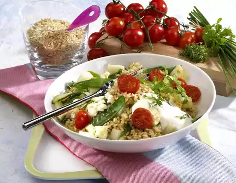 Rice Salad With Artichokes, Cooked Ham And Yoghurt Dressing