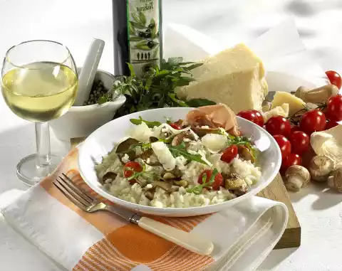 Mushroom Risotto With Rocket, Tomatoes And Parmesan
