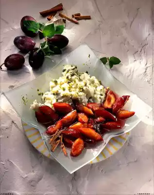 Plum Compote With Pistachio Rice