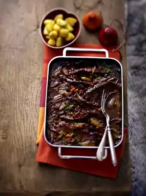 Burgundy Roast Beef With Roast Potatoes