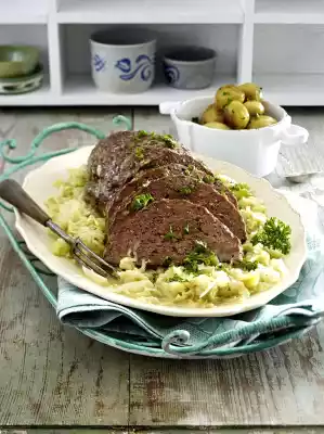 Classic Meat Loaf With Butter Savoy Cabbage And Roast Potatoes
