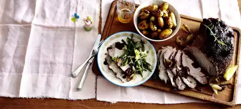 Glazed Asian Roast Pork With Beans And Mustard Potatoes