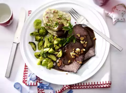 Sauerbraten With Gingerbread Sauce And Brussels Sprouts