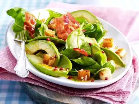 Spinach Salad With Bacon, Croutons And Avocado