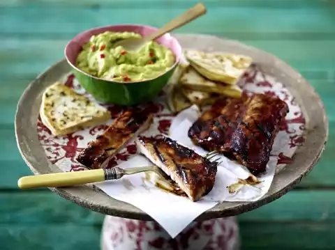 Barbecue Spare Ribs With Guacamole And Cheese Quesadilla