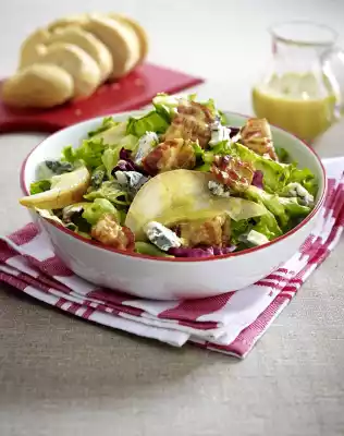 Mixed Salad With Gorgonzola, Fried Pear And Bacon Strips