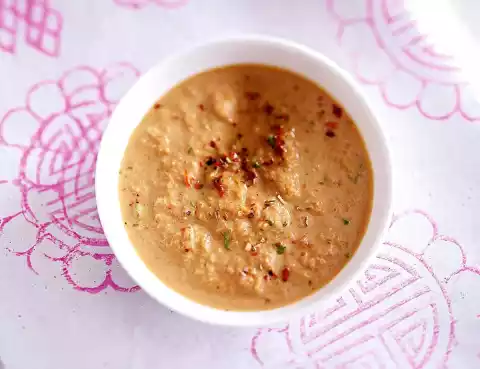Green Beans With Cashew Sauce And Red Cabbage Salad