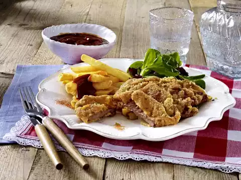 Beef Escalope With Rosemary Breading, French Fries And Salad