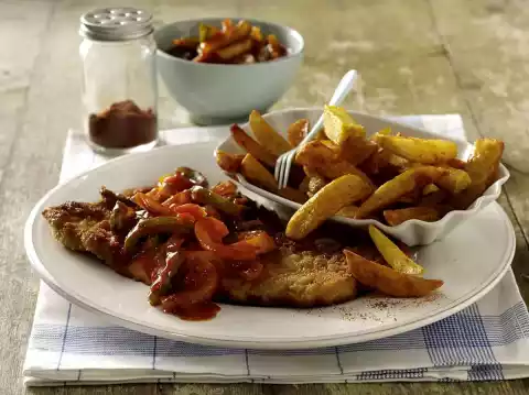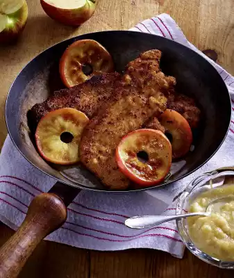 Breaded Schnitzel With Apple Compote And Caramelized Apples