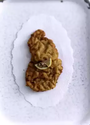 Mini-Schnitzel Of Pork With Roasted Potato Cubes And Sugar-peas-carrot-vegetables