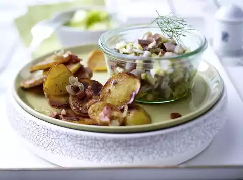 Häckerle With Fried Potatoes And Cucumber Salad