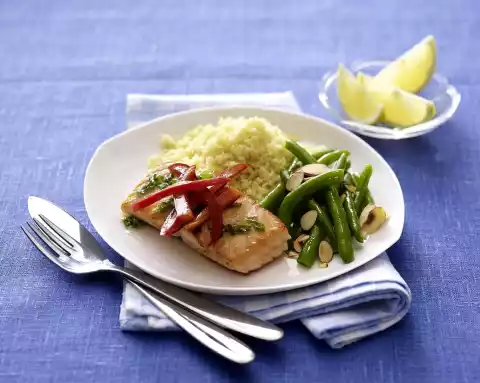 Ingwer-Honig-Lachs Mit Grünen Bohnen, Mandel Und Vollweizen-Couscous