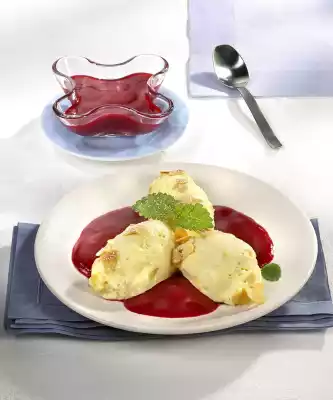 Marzipan Noodles With Raspberry Sauce