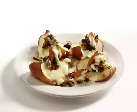 Baked Apple Filled With Crunchy Muesli, Butter And Soft Apricots On Zabaglione