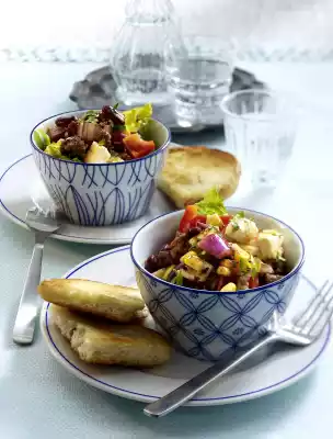 Chili Con Carne Salad With Feta Cheese, Corn And Minced Meat
