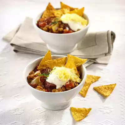 Baked Beans With Tortilla Chips And Cabanossi