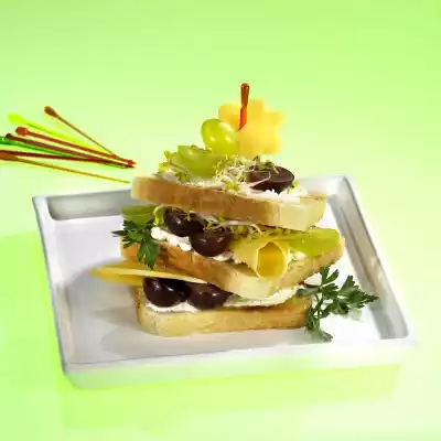 Gouda Wheat Toast Bread With Grapes And Sprouts