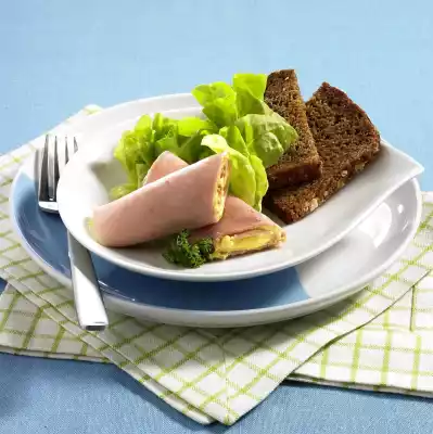 Ham Rolls With Egg And Herbs Spread And Wholemeal Bread