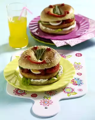 Bagel Faces With Breaded Hunting Sausage