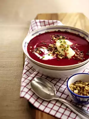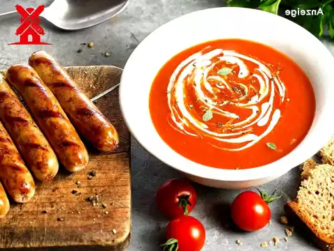 Spicy Sangrita Tomato Soup With Vegetarian Sausage