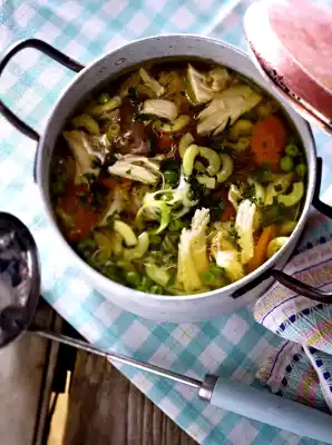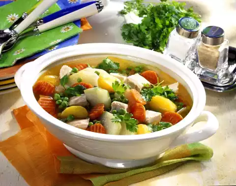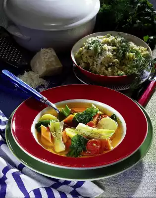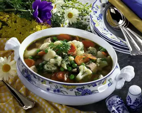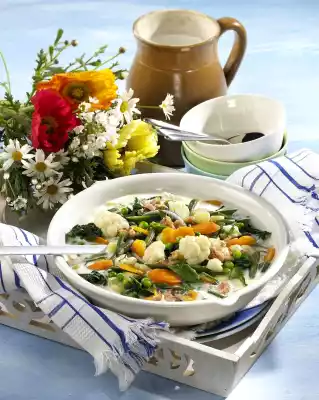 Kesäkeitto - Summer Vegetable Soup With Prawns